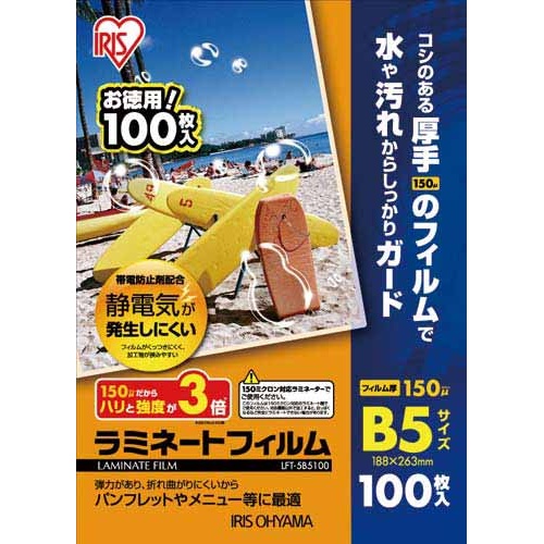 B5サイズ、100枚入り。厚さ150μmで、静電気によるホコリの付着を抑えます。