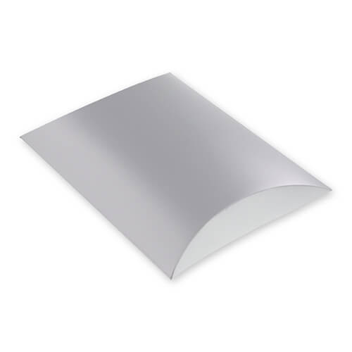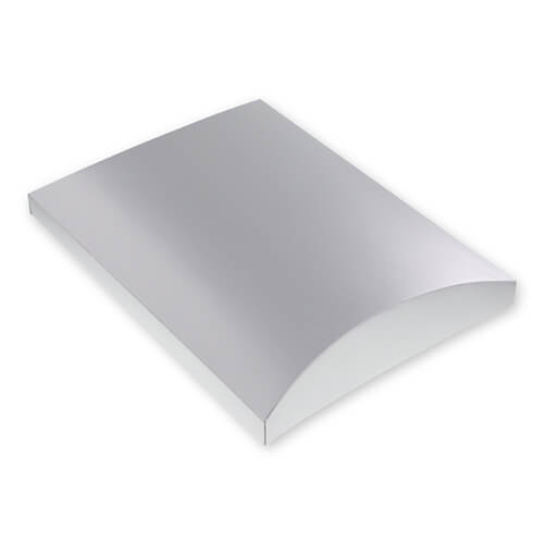 ラッピングにピッタリなピロー型のギフトボックス(銀)。Yシャツやブラウスなどの梱包にちょうど良いサイズ感となっています。