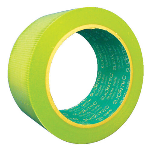 幅50mm×長さ50m×厚さ0.14mmで緑色の養生テープ。きれいに剥がせる弱粘着タイプです。作業性に優れており、建築・塗装に適しています。