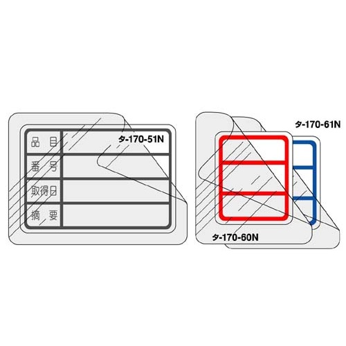 コクヨのタックタイトルC。青枠で、サイズは24×20mm。透明保護フィルム付きで、汚れを防ぎます。12片×7枚入り。