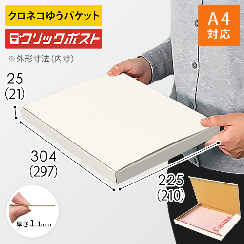 ネコポス・クリックポスト対応!A4サイズ・厚さ2.5cmの白色N式メール便ケース。