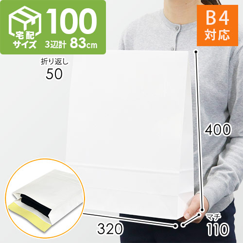 B4サイズまで対応した白無地・マチ付き・テープ付き宅配袋(角底袋)。洋服や書類の発送に便利です。