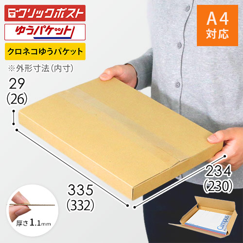 クロネコゆうパケット・クリックポスト・ゆうパケット・定形外郵便に対応!A4サイズ・厚さ2.5cmのN式メール便ケース。