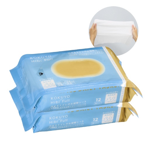 コクヨの流せるトイレ掃除シート!厚手で大判、床や壁も1枚で掃除でき、ミシン目入りで便利!せっけんの香りで清潔感も!