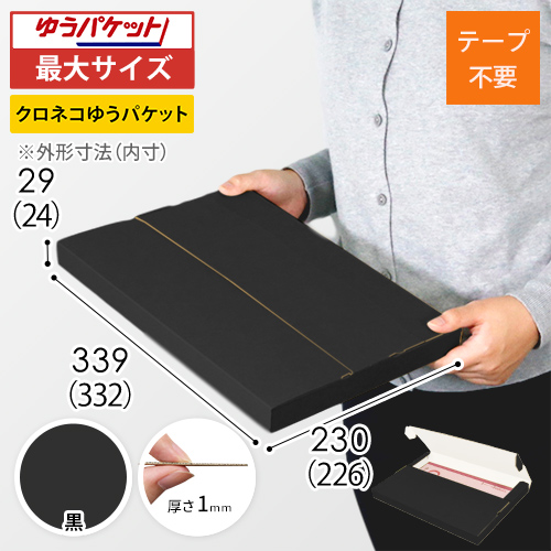 表面に黒色のカラーライナーを使用したメール便ケース。高級感ある見た目に仕上がるため、通販商品の発送やパッケージなどにおすすめです。
