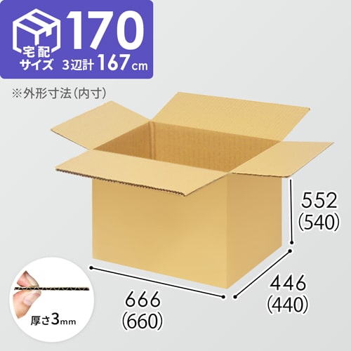 内寸660×440×540mmで、宅配170サイズに対応したダンボール箱。衣料品や服飾雑貨を扱うお客様におすすめの仕様です!