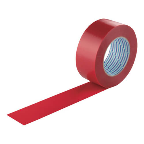 幅50mm×長さ50m×厚さ0.16mmで赤色のクロステープ。軽くて丈夫で、重ね貼りが可能です。重梱包におすすめ。カラータイプで、色分けによる梱包物の識別・分類にも便利です。