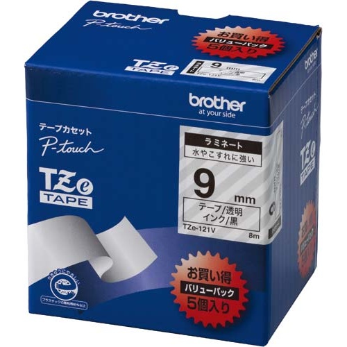 ラミネートフィルム加工で水やこすれに強いラベルテープ!製造現場の注意喚起や銘板ラベル作成に!9mm幅、黒文字、5個パック。