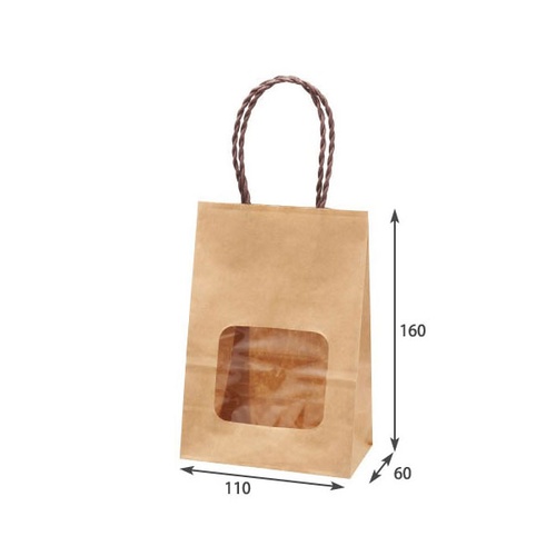 透明窓が中身を際立たせるミニ手提袋。個包装のお菓子やプチギフトの演出に最適で、店頭ディスプレイにも活躍します。