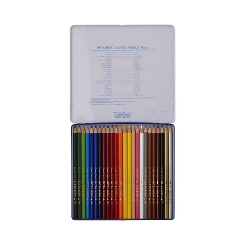 三菱鉛筆の色鉛筆パレット。鮮やかな24色セットで、描く喜びを体験!シンプルなデザインと豊富なカラー展開で、創造性を育みます。