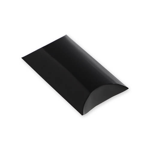 ラッピングにピッタリなピロー型のギフトボックス(黒)。キーケースやパスケースといったアパレル雑貨の梱包にちょうど良いサイズ感です。
