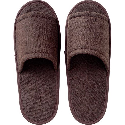 肌触りの良いパイル地を使った使い捨てスリッパ。50足セットで業務用に最適。汚れが目立ちにくいブラウン。