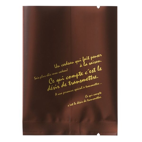 抹茶やココアの色褪せ防止に。遮光・保香効果で品質を護る、マットなブラウンアルミ蒸着ガス袋。