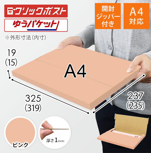 表面にピンク色のカラーライナーを使用したメール便ケース。高級感ある見た目に仕上がるため、通販商品の発送やパッケージなどにおすすめです。