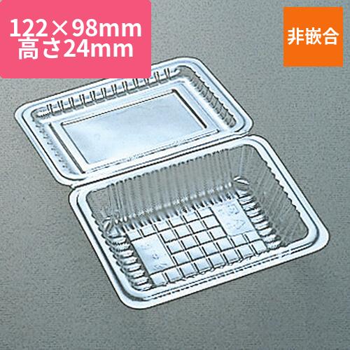 サイズが横122×縦98×高24mm・蓋高7mm(底寸:横90×縦65mm)のフードパック。スーパーや飲食店の備品などにいかがでしょうか。