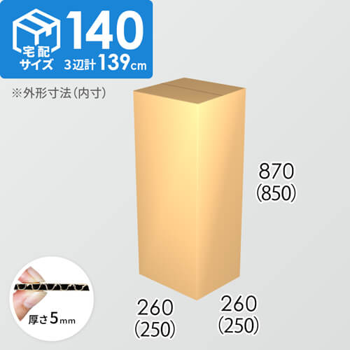 宅配140サイズ対応のダンボール(三辺合計139cm)。オーダーメイドで人気のサイズを商品化しました。5mm厚なので重量のある商品の発送にも対応可能です。