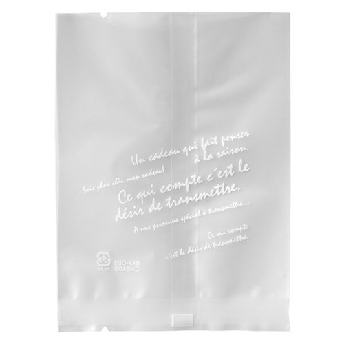 優しいマットな半透明と洗練されたデザイン文字が絶妙。脱酸素剤・乾燥剤対応で、様々なお菓子を美しく包み込みます。