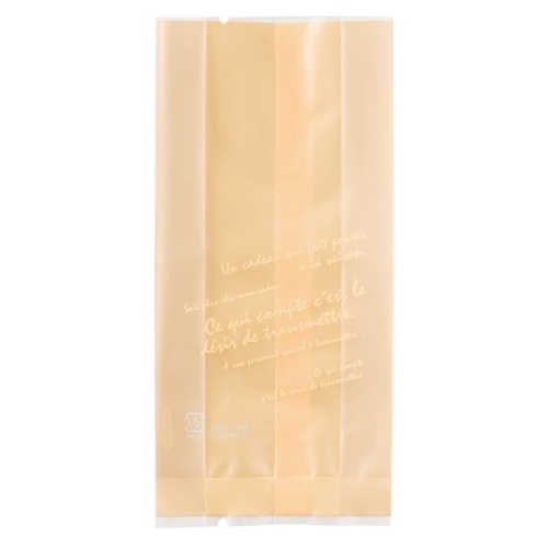マットな半透明とデザイン文字がお洒落な合掌ガス袋。脱酸素剤・乾燥剤対応で、どんなスイーツも上品に演出します。