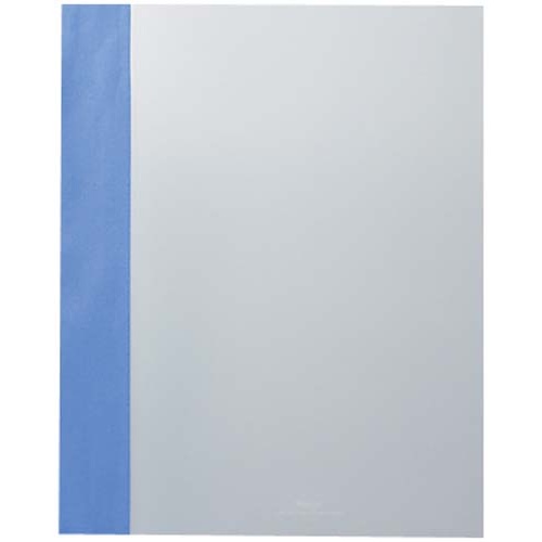 A4縦型、青色の製本ファイル50冊セット。書類の端が揃う背テープ付きで、収容枚数は約60枚です。