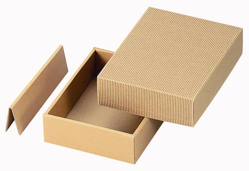 高級感あるかぶせ蓋タイプのギフトパッケージ。材質はE/F(1.5mm厚)のダンボールで、表面の色はクラフトです。山仕切付き。