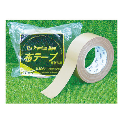 幅50mm×長さ25m×厚さ0.32mmで茶色の布テープ。粘着力、保持力、引張強度など、全てが最上級となっております。重量物の梱包用に最適です。