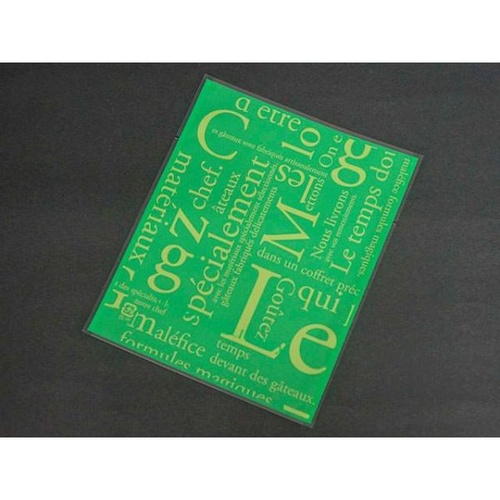和洋菓子の包装に最適。ガスバリア性で鮮度を保ち、美しい洋柄グリーンが商品価値を高める透明カマス袋です。