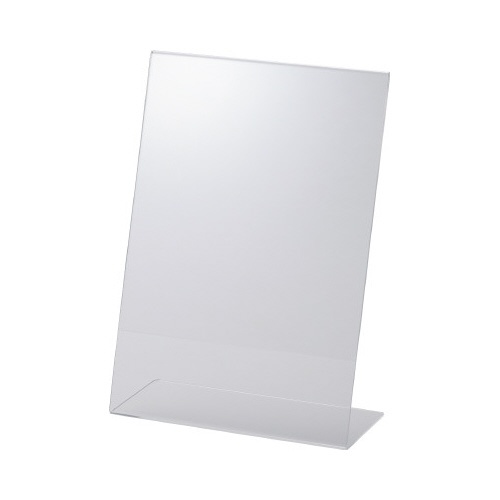 アクリル製のL型サインホルダー。B5サイズ(182×257mm)に対応。クリアで視認性抜群!