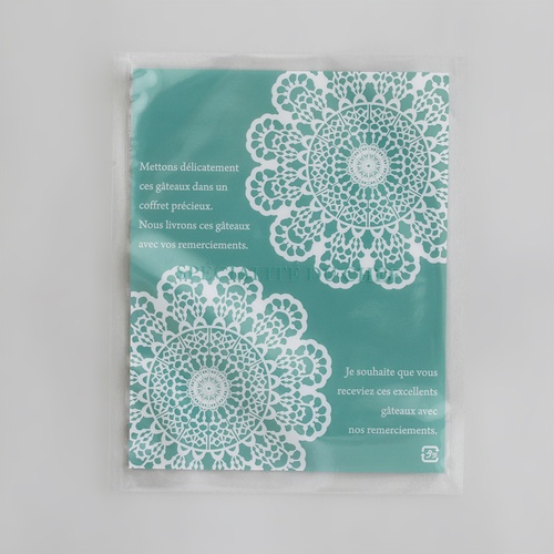 和洋菓子に最適なガスバリア・防湿性の透明袋。脱酸素剤対応で鮮度を保ち、レースピンクが商品を華やかに演出します。