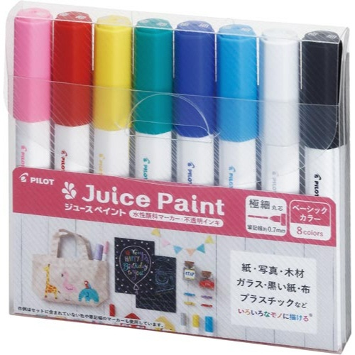 しっかり握れる六角形で、様々な素材に鮮やかに描ける水性顔料マーカーの極細タイプ。8色セット。