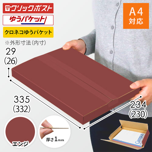 表面にエンジ色のカラーライナーを使用したメール便ケース。高級感ある見た目に仕上がるため、通販商品の発送やパッケージなどにおすすめです。