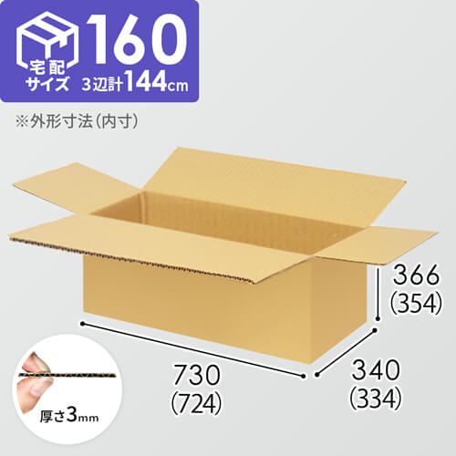 内寸710×335×375mmで、宅配160サイズに対応したダンボール箱。家電製品、AV機器、PC周辺機器を扱うお客様におすすめの仕様です!
