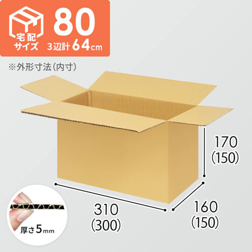 宅配80サイズ対応のダンボール(三辺合計64cm)。オーダーメイドで人気のサイズを商品化しました。食品や雑貨などの商品発送におすすめです。