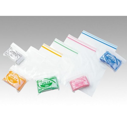生産日本社のユニパックGPカラーチャック白。厚さ0.04mmで小物の色分け・整理整頓に役立つチャック付き袋です。