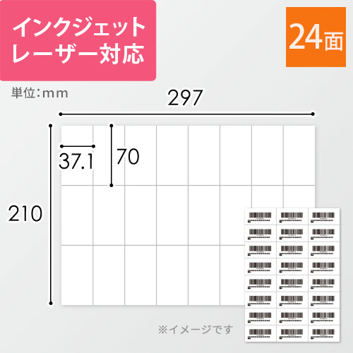 FBA納品時のバーコード印字やオリジナルラベル制作に便利な無地ラベル用紙(一片70×37.1mm)。インクジェット・レーザープリンター対応しています。宛名ラベルにもおすすめです。