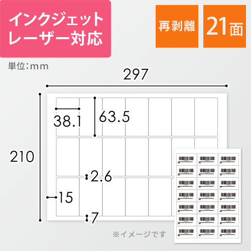 FBA納品時のバーコード印字やオリジナルラベル制作に便利な無地ラベル用紙(一片52.5×29.7mm)。インクジェット・レーザープリンター対応しています。宛名ラベルにもおすすめです。通常よりも剥がしやすく、後処理が簡単になっています。