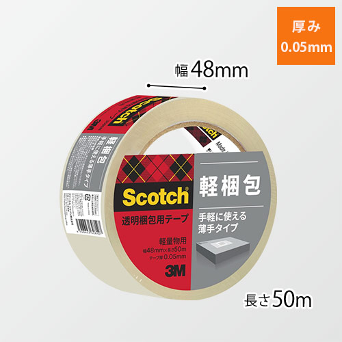 軽量物用のOPPテープ。仕上がりの見た目がキレイです。簡単な封かんや軽い荷物の包装におすすめです。