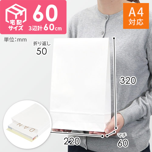A4サイズまで対応した白無地・マチ付き・テープ付き宅配袋(角底袋)。洋服や書類の発送に便利です。