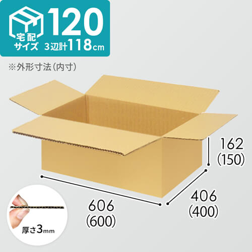 宅配120サイズ対応のダンボール(三辺合計118cm)。オーダーメイドで人気のサイズを商品化しました。本や洋服などの商品発送におすすめです。