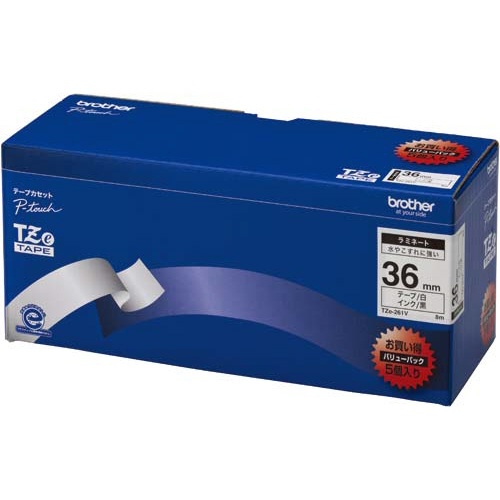 ピータッチ用ラミネートテープ、白地に黒文字36mm幅。5個パックでたっぷり使えます!
