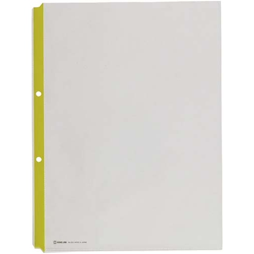 キングジム製、穴切れを防ぐ補強テープ付きA4ポケット。100枚入り。