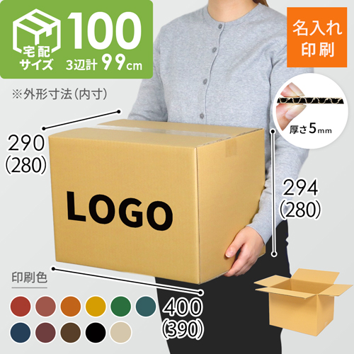 宅配100サイズのダンボール箱に、お客様のロゴや社名などを名入れ印刷します。(DA005と同サイズ)