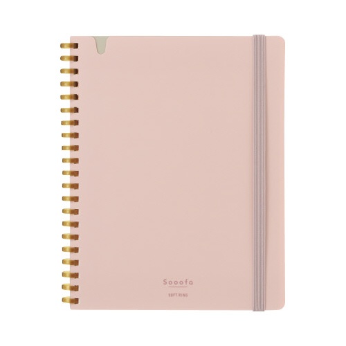 B6変形、80枚、方眼罫。ピンクの表紙がスタイリッシュなコクヨのソフトリングノート。切り取りミシン目入りで、ゴムバンド付き。