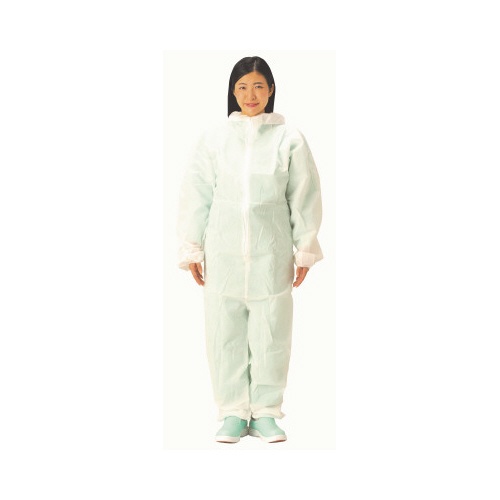 ポリプロピレンスパンボンド不織布製の丈夫なつなぎ服。50着入り。Lサイズ、ホワイト。