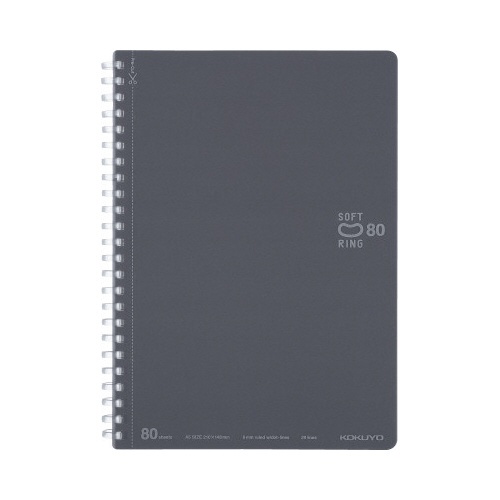 コクヨのソフトリングノート。やわらかリングで書きやすいドット入りB罫、A5サイズ、ダークグレー5冊セット。