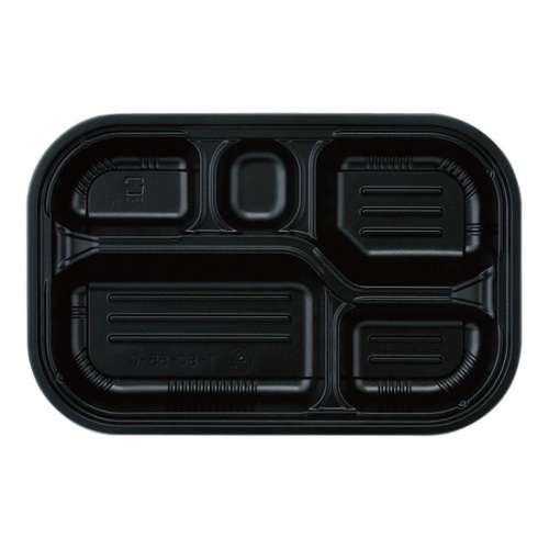 植物由来PLA素材の黒色中仕切トレー。環境に配慮したバイオマス90刻印入り。お弁当・テイクアウトに最適な一品です。