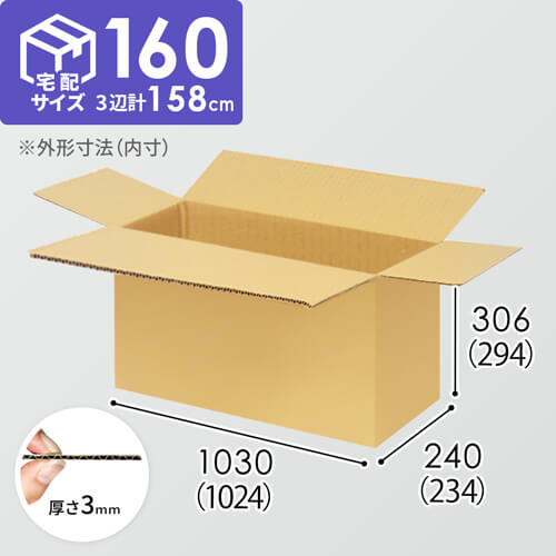 1100×800mmのカゴ台車に3面×6段積める、納品向けダンボール箱。内寸は1024×234×294mmで、宅配160サイズに対応しています。