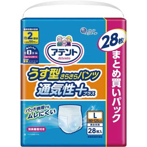 全面通気性シートでムレを防ぎ、さらさら感をキープ!2回分の吸収力で安心のLサイズ、男女共用。