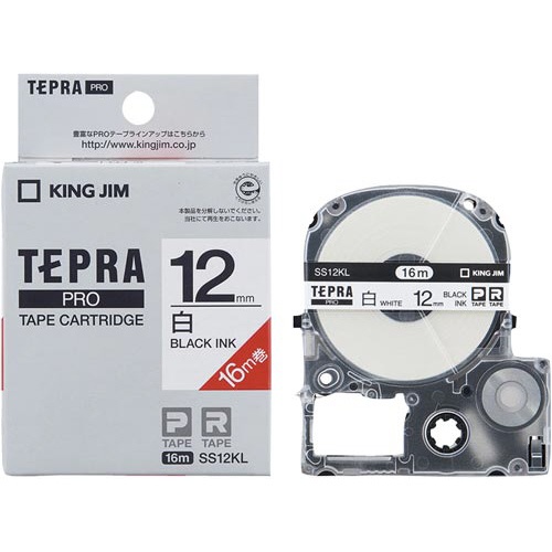 白ラベル/黒文字 12mm幅 16m巻 長さ2倍でたっぷり使えるロングタイプ 5個入