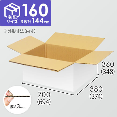 1100×800mmのカゴ台車に3面×4段積める、納品向けダンボール箱。内寸は724×334×444mmで、宅配160サイズに対応しています。