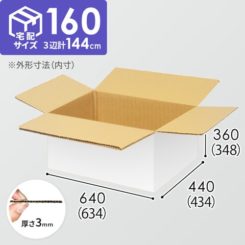 1100×1100mmのパレットに4面×5段積める、納品向けダンボール箱。内寸は634×434×348mmで、宅配160サイズに対応しています。